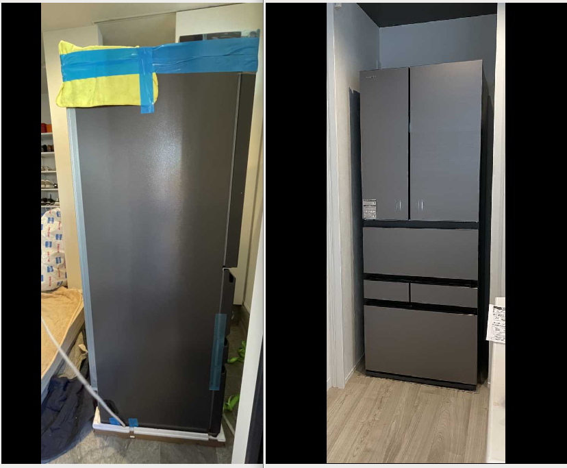 ご新居のキッチンが2Fにあり、そこへ新品600L冷蔵庫を搬入、設置したい。