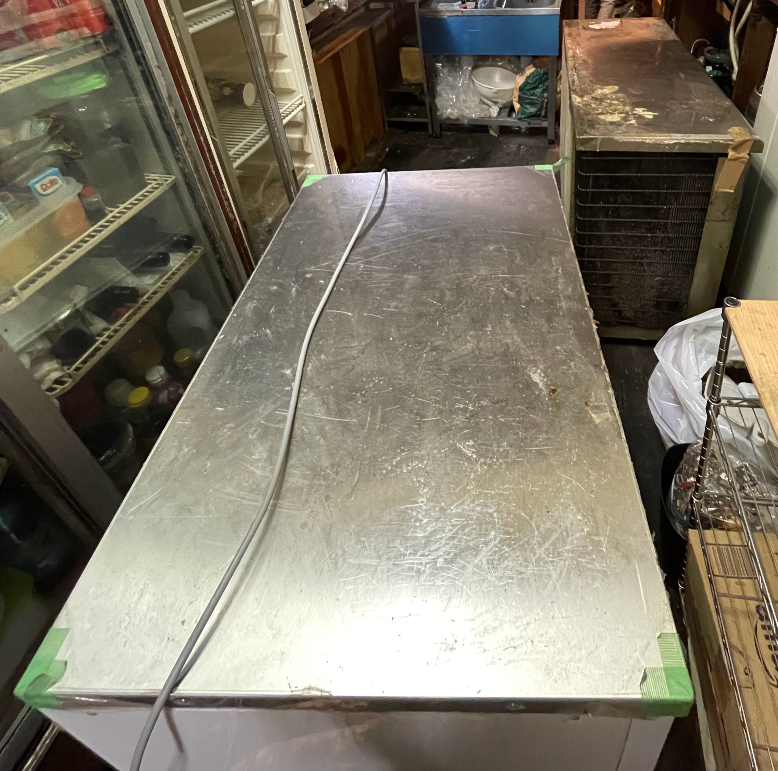 飲食店様で、新旧の業務用調理台付き冷凍冷蔵庫の入れ替えと、旧機処分作業。